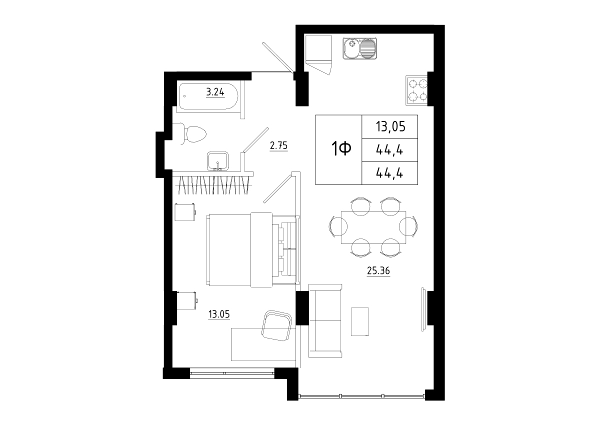 44,4 кв.м.