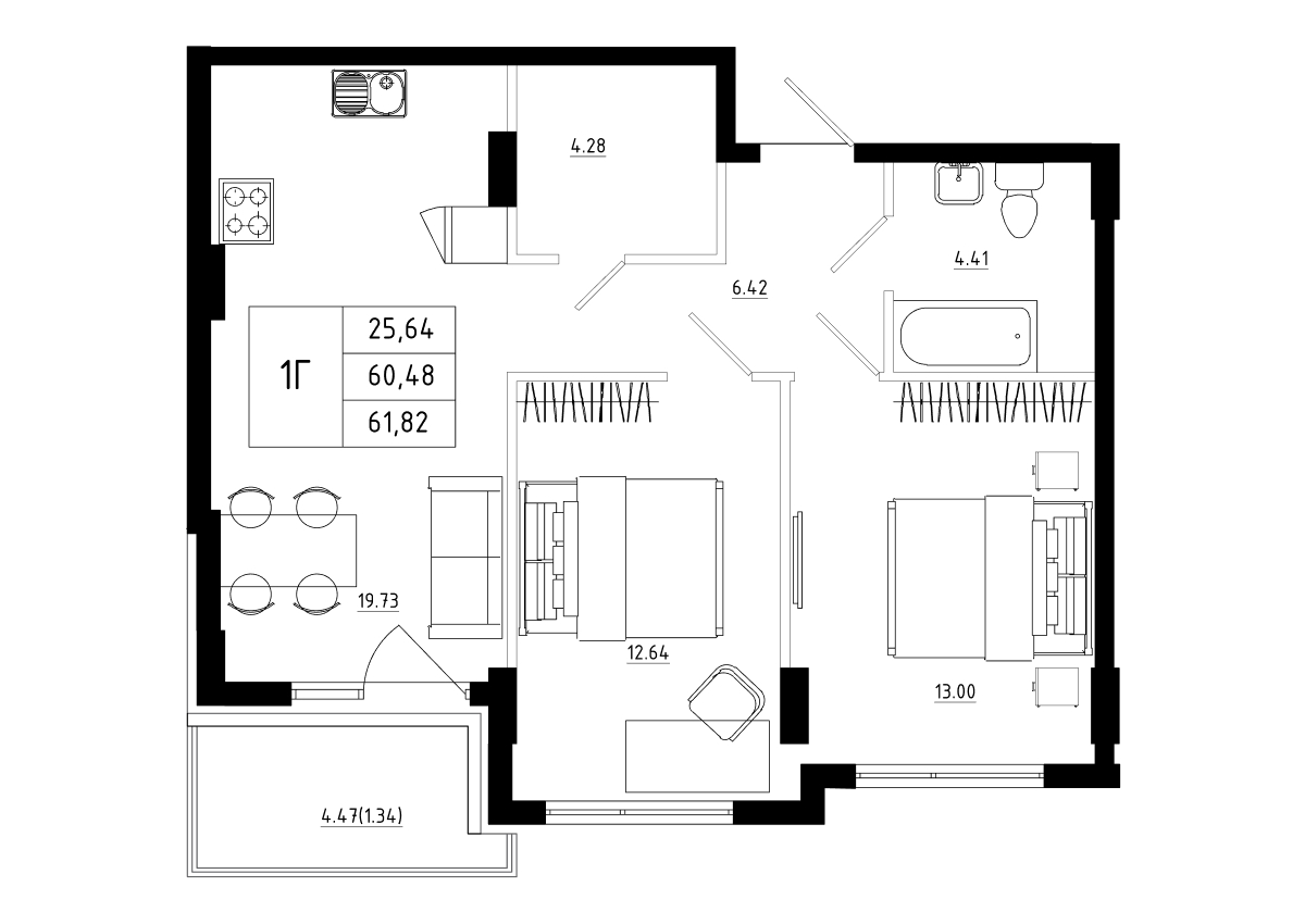61,82 кв.м.